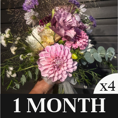 Our 1 Month bouquet subscription allows you to choose which month you prefer (August or September) to receive 4 weeks of bouquets.