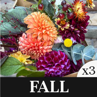 3 weeks of bouquets beginning in September featuring our dazzling dahlias, sunflowers, mums, zinnias, lisianthus and dried florals.